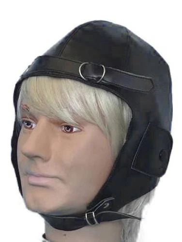Black vinyl adult Aviator hat for a great accessery Pilot Icon dress ups
