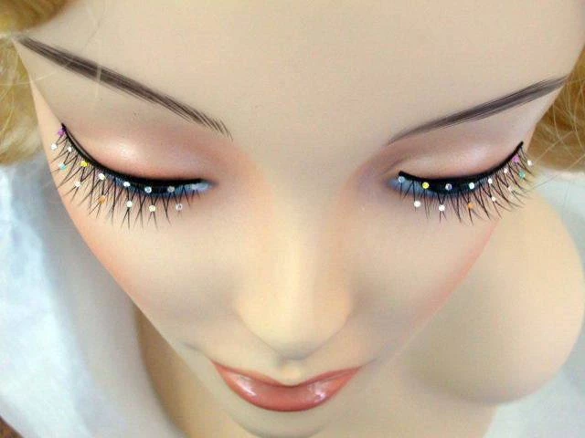 Add that extra bit of fun to your look with these criss cross lashes embellished with multicoloured sparkles. Includes latex glue.