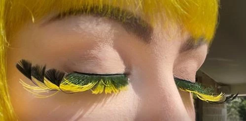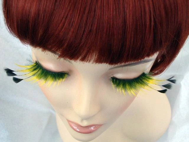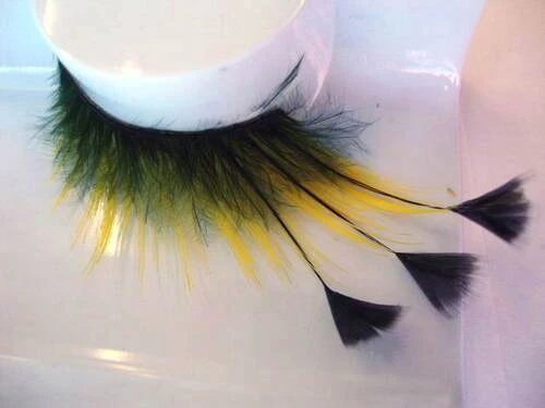 Glamorous yellow lashes with long black feathers