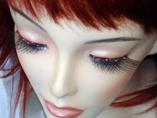 Criss crossing lashes with a brown glitter trim. Perfect to give that extra sparkle. Includes latex glue.