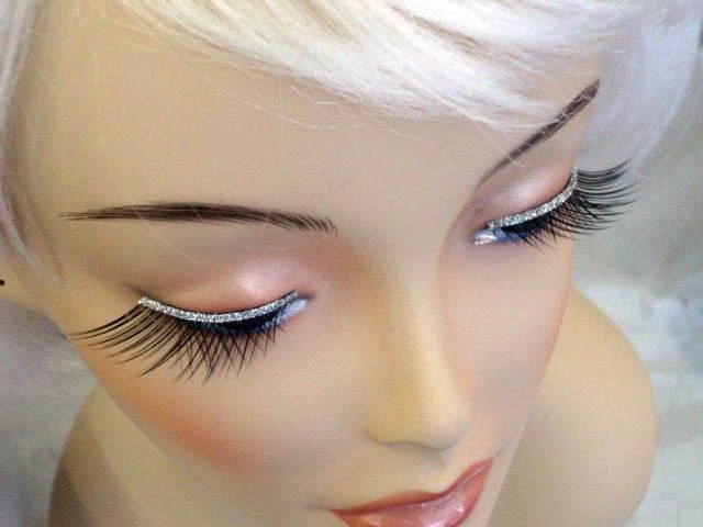 Beautiful criss crossing lashes with a silver glitter trim. Excellent for 1920s flappers and Hollywood glamour. Includes latex glue.