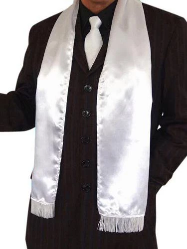 White gangster scarf with fringing. Great 1920’s costume fancy dress accessory.