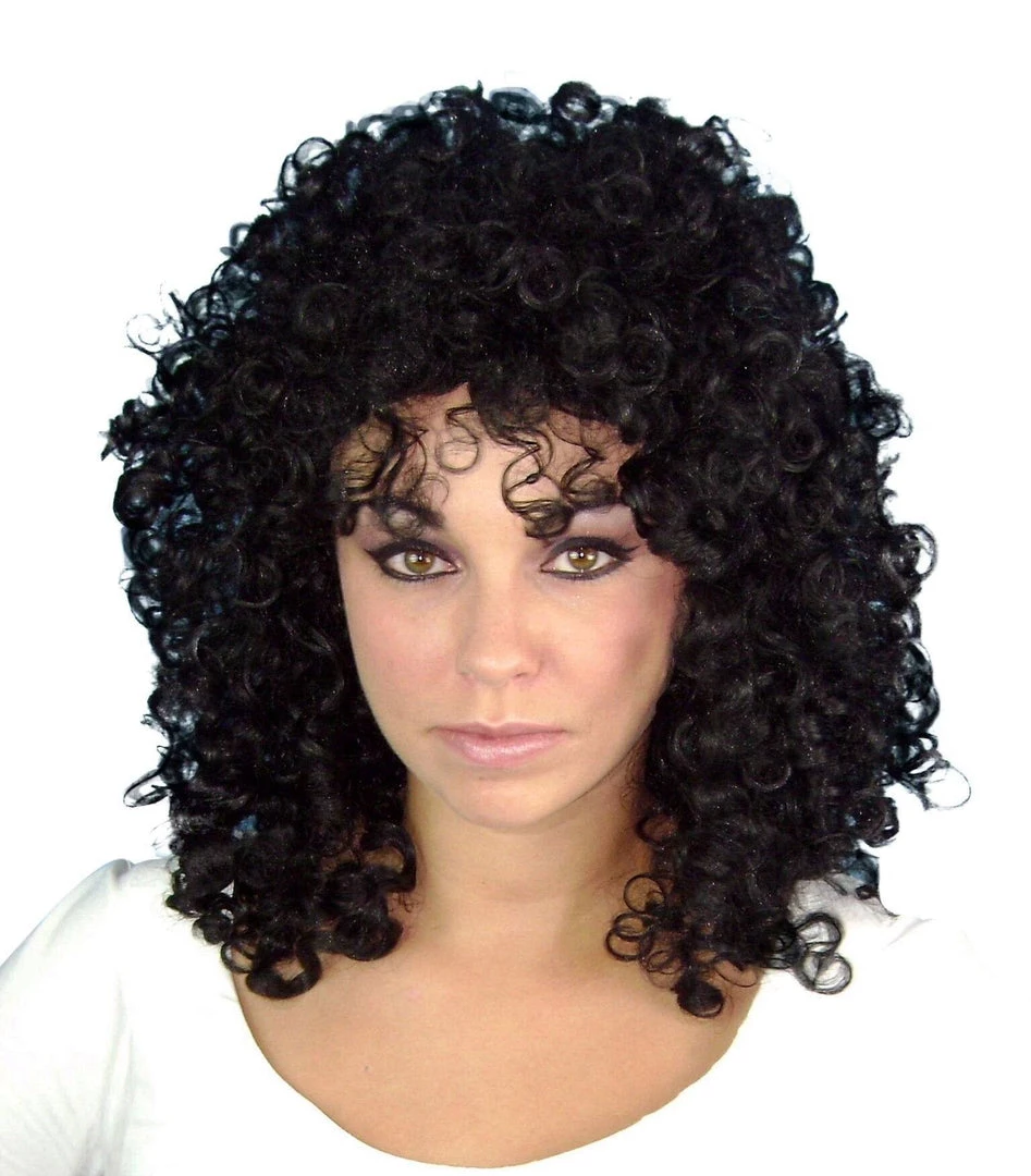 Must have 1980s do with this big curly black hair costume wig. Also comes in Auburn and Blonde.