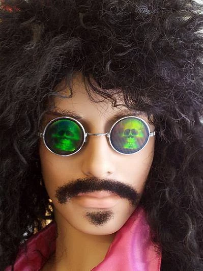 John Lennon style wire framed glasses with skull holograms in the lenses, excellent as a badass addition to your Punk or Biker look or a spooky accessory for Halloween.