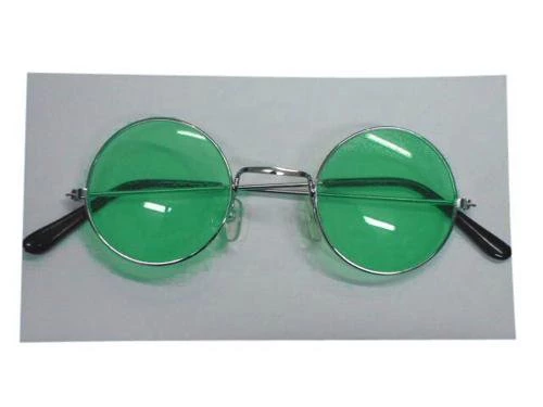 John Lennon’s signature round wire frames with a green lens. Imagine how good they’d look with your Beatles, 60s or 70s costume. Also work wonderfully as the green glasses worn in the Emerald City scenes in Wicked and the Wonderful Wizard of Oz!