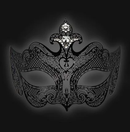 Giglio is the Italian word for “lily”, the insignia of the famous Medici family. This filigree metal Venetian mask is an aristocratic black metal Ladies masquerade mask with crystal embellishments on the forehead in the shape of a lily. Handmade in Venice, Italy. Comes with certificate of authentication.