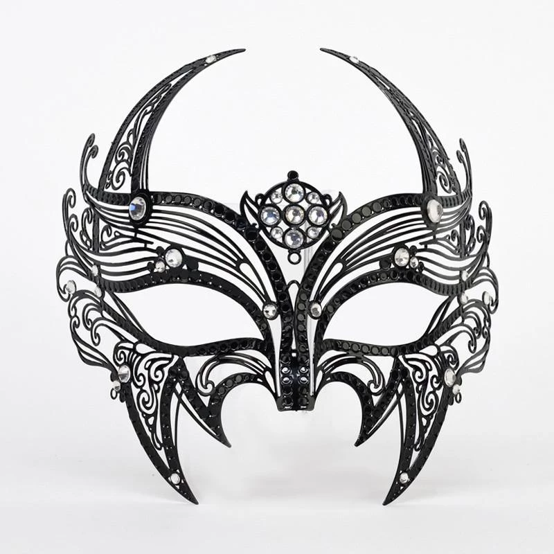The Diavolo Devil women’s masquerade deluxe metal mask features a stylish Halloween design with crystal embellishment. Handmade in Venice, Italy. Comes with certificate of authentication.