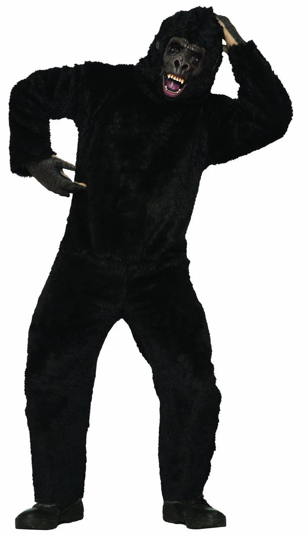 Furry jumpsuit with rubber mask, gloves. Great as King Kong!