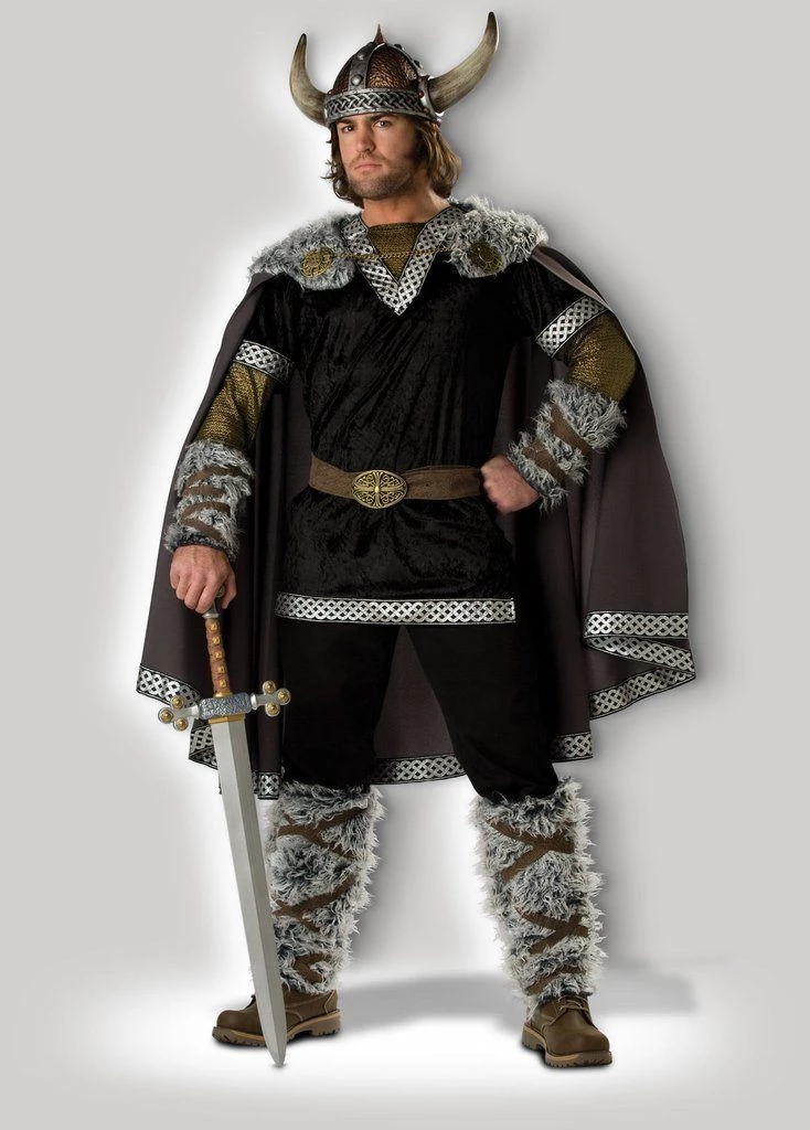 Dress up as the legendary Nordic warrior Ragnar in this deluxe medieval viking hire costume for men. Costume includes tunic with Celtic trim and fur cuffs, matching furry boot tops, cape with fur collar and chain closure, belt, helmet. Swords sold separately. Without the viking helmet this would also make a great costume for a Game of Thrones themed party.