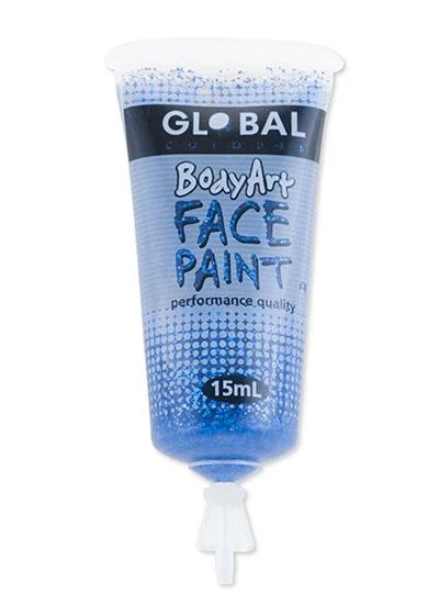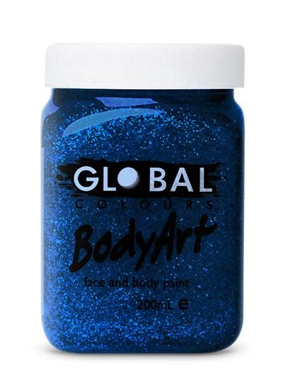 Apply Blue Glitter Body Paint and Face paint with brush, finger or sponge. Dilute with water for airbrushing. Removes easily with soap and water. There are few things you will keep for your entire life. Your skin however is definitely one of them. This is a fact we kept in mind when we formulated our range of Global Colours BodyArt. The ease with which you can apply the bright silky smooth colours and wash them is no accident.