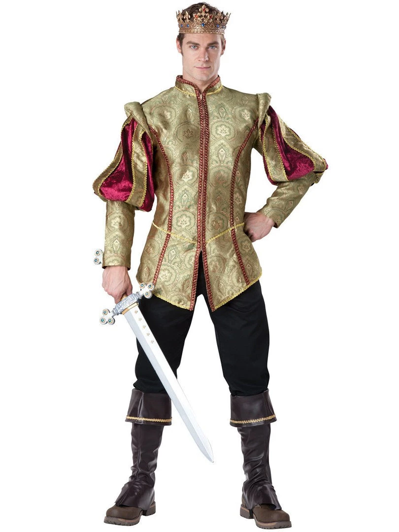 Whether you have a true claim to the throne or not you’ll look like a Medieval king in this beautiful lush costume which includes greenish-gold brocade and panne doublet with gold trim, bootcovers and crown. Tights and various toy swords also available with hire. Perfect for Game of Thrones parties as deplorable Joffrey or sweet but insipid Tommen.