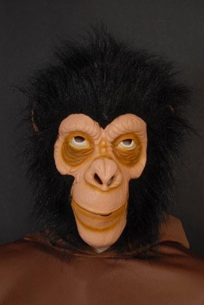 Full face latex chimpanzee mask with black hair. Great for Planet of the Ape costumes, Abu from Disney’s Aladdin or a Bruno Mars backup dancer.