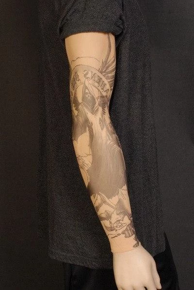 Realistic Tattoo Sleeve for one arm, featuring the Grim Reaper in black and grey.