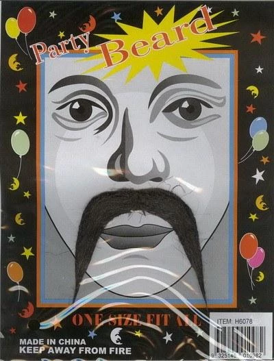 Small black felt handlebar fancy dress moustache with adhesive tape.