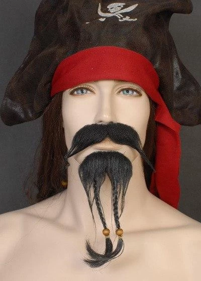 Stick-on black Jack Sparrow pirate costume mustache goatee and mo set
