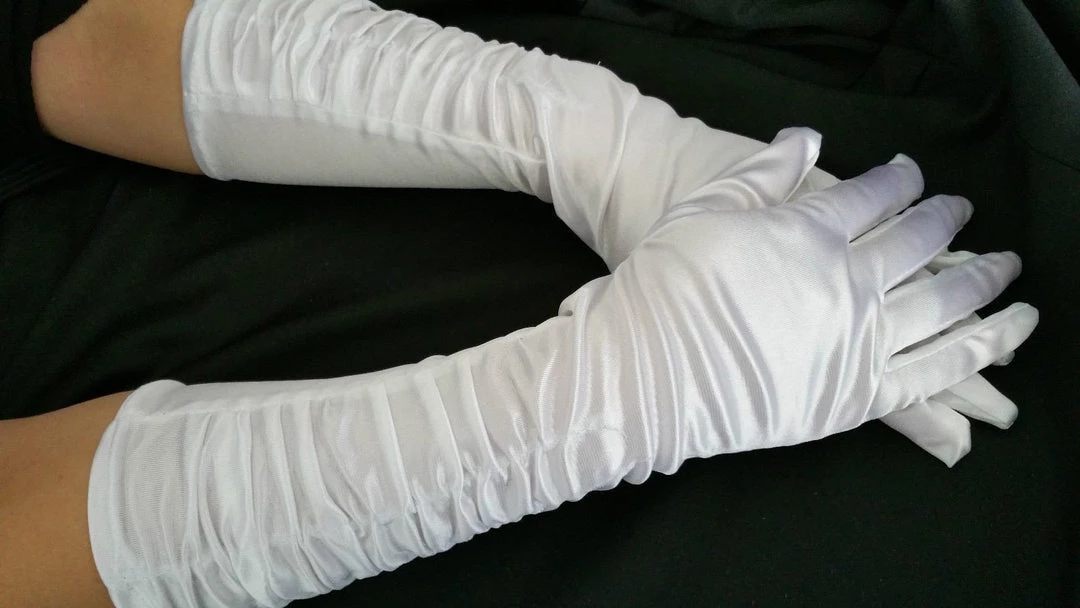 White long gloves, shiny satin Lycra 20,s cocktail and wedding gloves