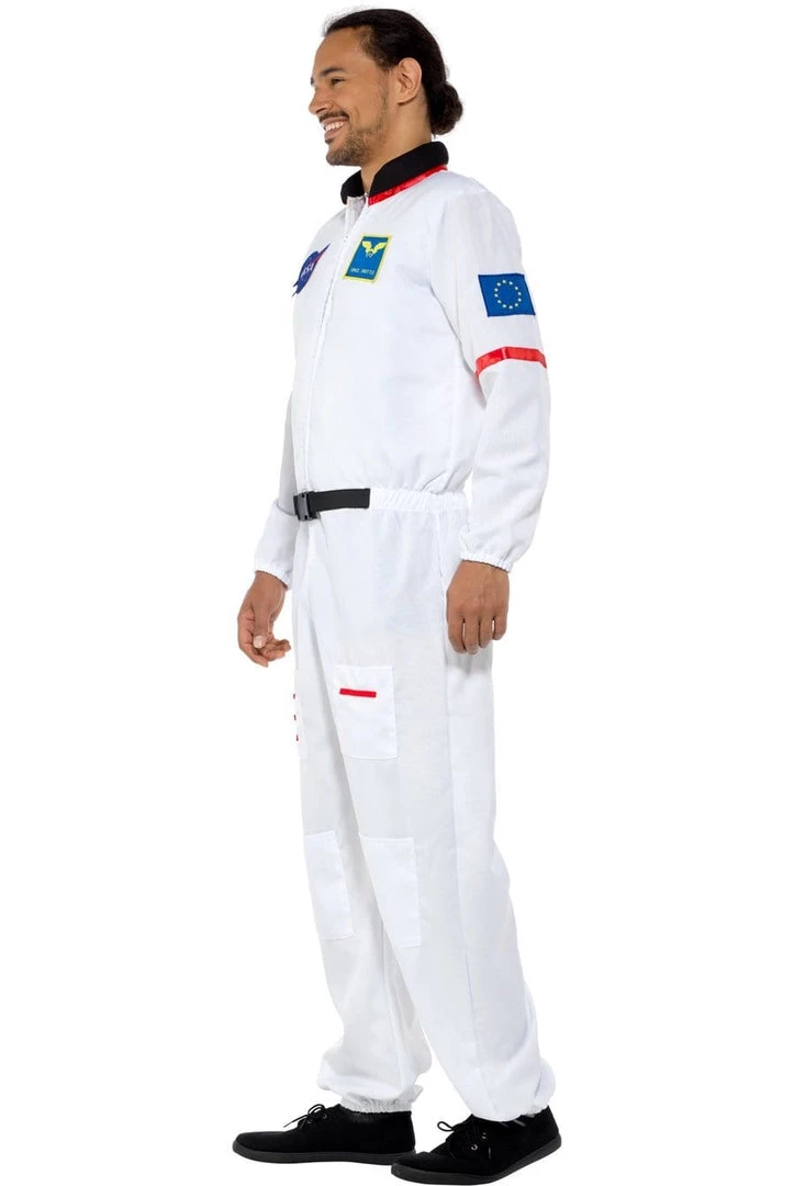 This costume is perfect for everyone who ever wanted to be an astronaut when they grew up. Journey to the outer reaches of space in this Astronaut costume for adults. White jumpsuit has NASA and Space Shuttle patches on the front and European Union patch on one sleeve so (in your imagination) you can join the European Space Agency or the International Space Station. The ultimate costume for a uniform party!