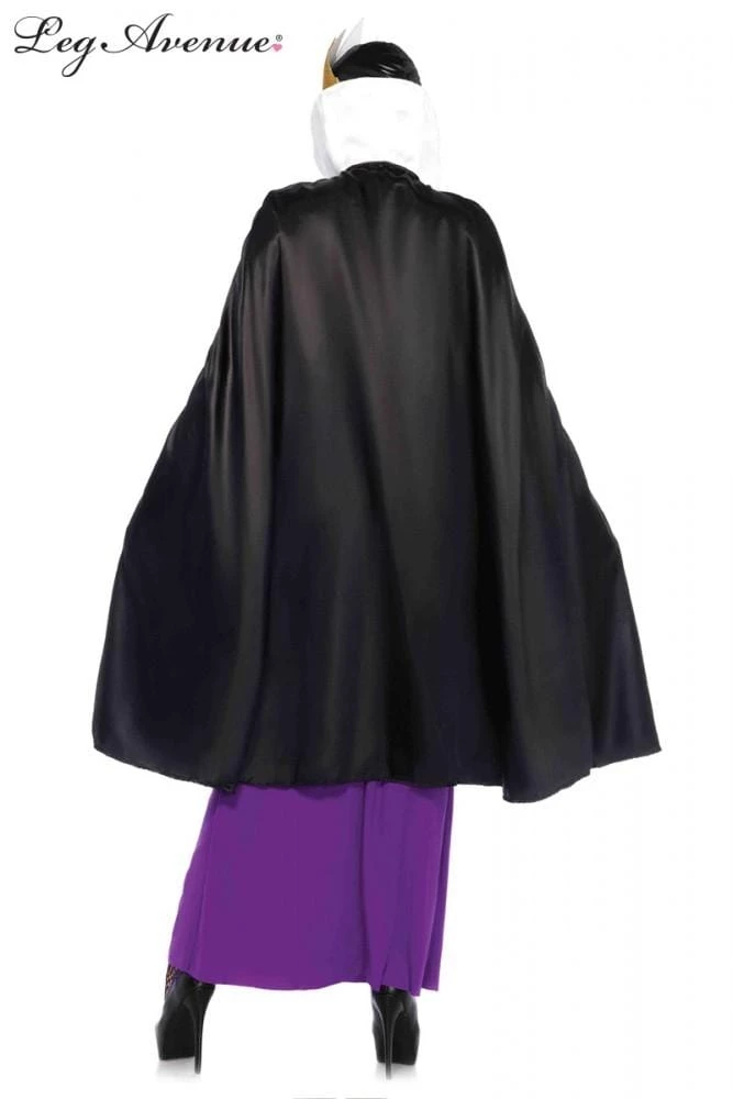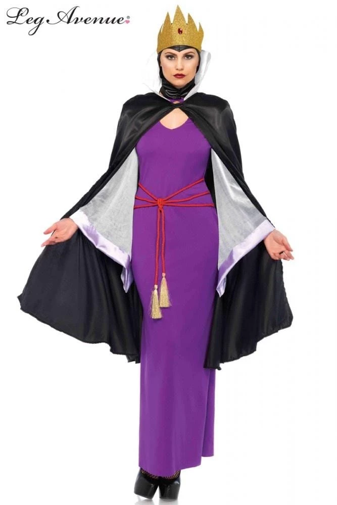 Mirror mirror on the wall, who’s the most wicked of them all? The baddies have all the fun. Have a fun time too dressing up as an Evil Queen in this stunning Leg Avenue costume. Hire this deluxe dark and deadly villain costume which includes stretch fitted purple dress with long sheer bell sleeves, cape, cowl and crown. The perfect antidote to all those Disney princesses. Perfect at Halloween.