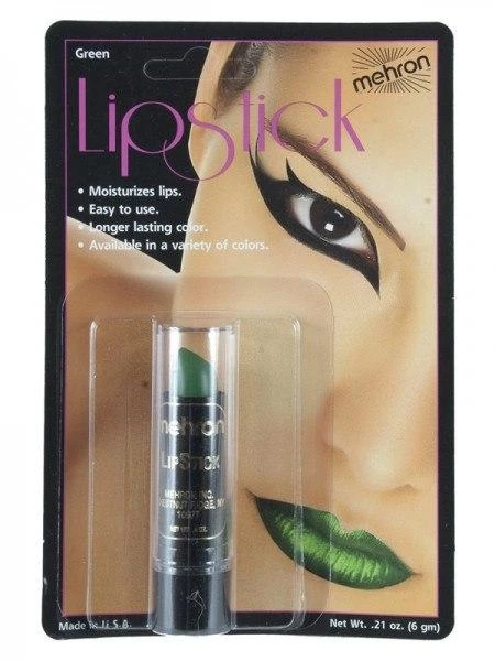 Lipstick in out-of-the-ordinary colours for a variety of fancy dress characters! Long lasting colour, moisturising and easy to use. Available in green, black, silver and red.