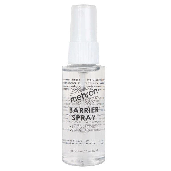 Barrier Spray is a product that has been designed to maximise the comfort and effect of your face and body art and can be used in muiltiple ways. Originally developed as an under based for 3D Gel to increase durability, the Barrier spray can also be used to protect sentisitve skin from harsh adhesives like AdGem and Spirit Gum, used between layers of face paint in order to preserve the work as you go, used before make-up to minimize sweating that can make the paint run or misted on top of your finished product to preserve the “just-applied” look to your make-up.