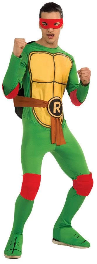 Cowabunga dudes! It’s the heroes in a half shell! The totally cool (?) 80s and 90s superheroes of your childhood, Teenage Mutant Ninja Turtles. This Raphael costume in adult sizes includes stretch jumpsuit, eyemask, elbow and knee pads and stuff-able shell. So get the gang together and order some marshmallow and anchovy pizza ’cause major butt-kicking will be back in town in these costumes.
