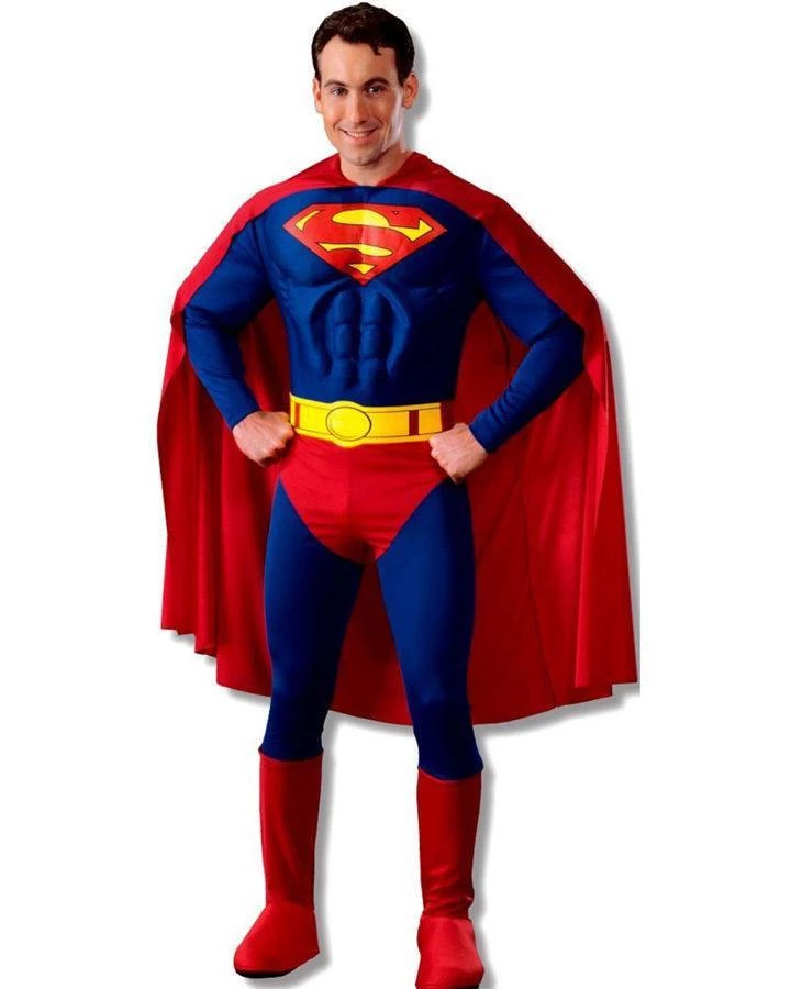 Is it a bird, is it a plane or is it a Muscle Chest Jumpsuit? The Superman Adult costume includes muscle chest jumpsuit with attached boot tops, cape and belt. Kryptonian abilities not included.