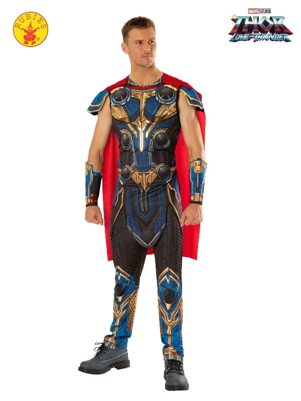 From Marvel Studios comes Thor Love and Thunder. See Thor, the space viking (?) go from Dad bod to God bod as he battles the villainous Gorr, who has vowed that All Gods Will Die! This deluxe costume for adults has separate top from bottoms, making it easy to wear to parties. Also comes with cape and gauntlets. BYO muscles.
