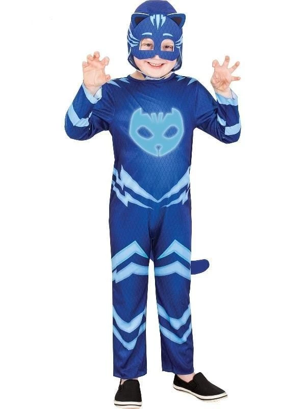 Don your magic Pyjamas and become leader of the PJ Masks’ team, Catboy! School boy by day, superhero by night! Connor is a blue-eyed, brown haired child who transforms into a blue cat with ears and a feline tail. Leader of the group, he has super-hearing using Cat Ears, can leap high and far using Super Cat Jump, and sprints fast using Super Cat Speed, when he puts on his pyjamas and activates his animal amulets. His chosen vehicle is the Cat-car. Join Catboy and his friends Gekko and Owlette as they fight the bad guys, Romeo, Luna Girl and Night Ninja. Start purring as you fight crime tonight in your PJ’s!