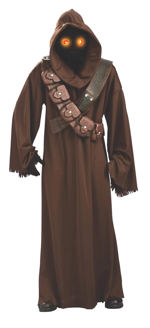 The Jawa are rodent-like natives of Tatooine, a planet in the galaxy of Star Wars by Lucas Film and Disney. With their brown hooded robes and glowing yellow eyes, they are scavengers on the desert of Tatooine and responsible for capturing C-3PO and R2-D2 in the original trilogy. Become a Jawa, as seen in Episode I The Phantom Menace, Episode VI Return of the Jedi and Episode II Attack of the Clones.