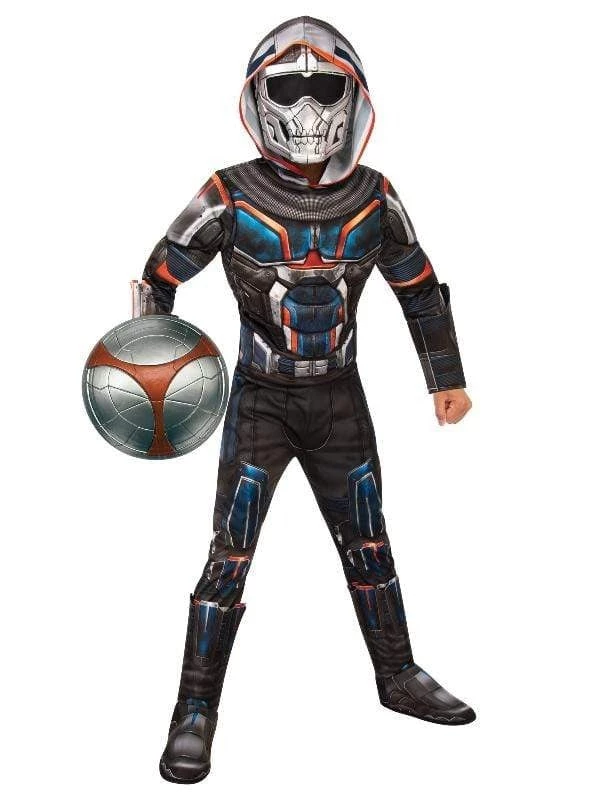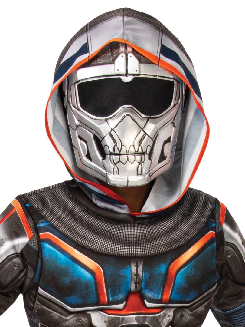 - Digitally printed deluxe hooded jumpsuit with printing on front and back and fibre filled muscle chest and arms. Moulded belt and chest pieces are attached