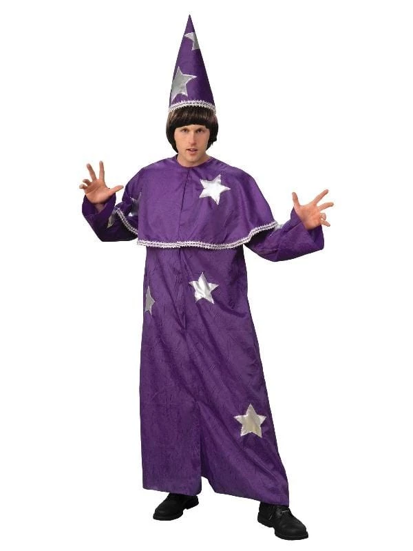 - Full length purple robe in polyester with digitally printed silver stars throughout