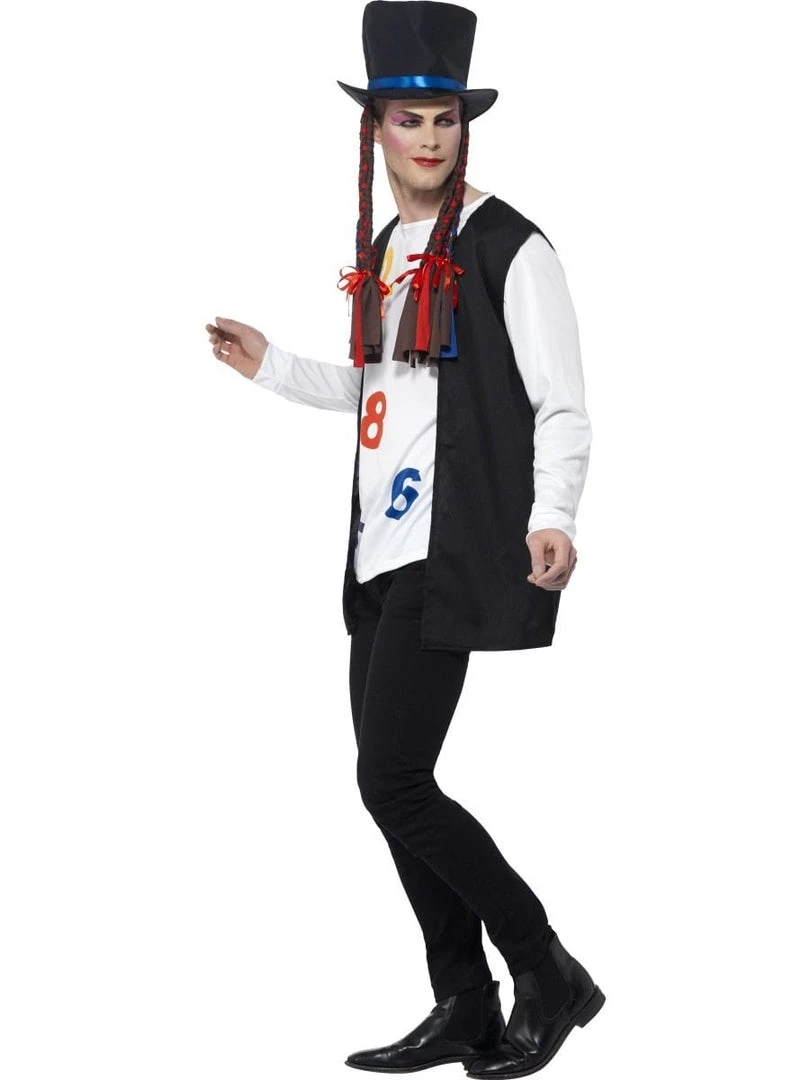 The original chameleon of the British pop music scene, dress in this iconic “gender bender” (as it was known then) pop star look from the 80’s. This costume is perfect for dressing up as Boy George from Culture Club, one of the biggest popstars of the 1980s. This androgenous look is ideal for women or men. Just add make-up to complete your transformation.