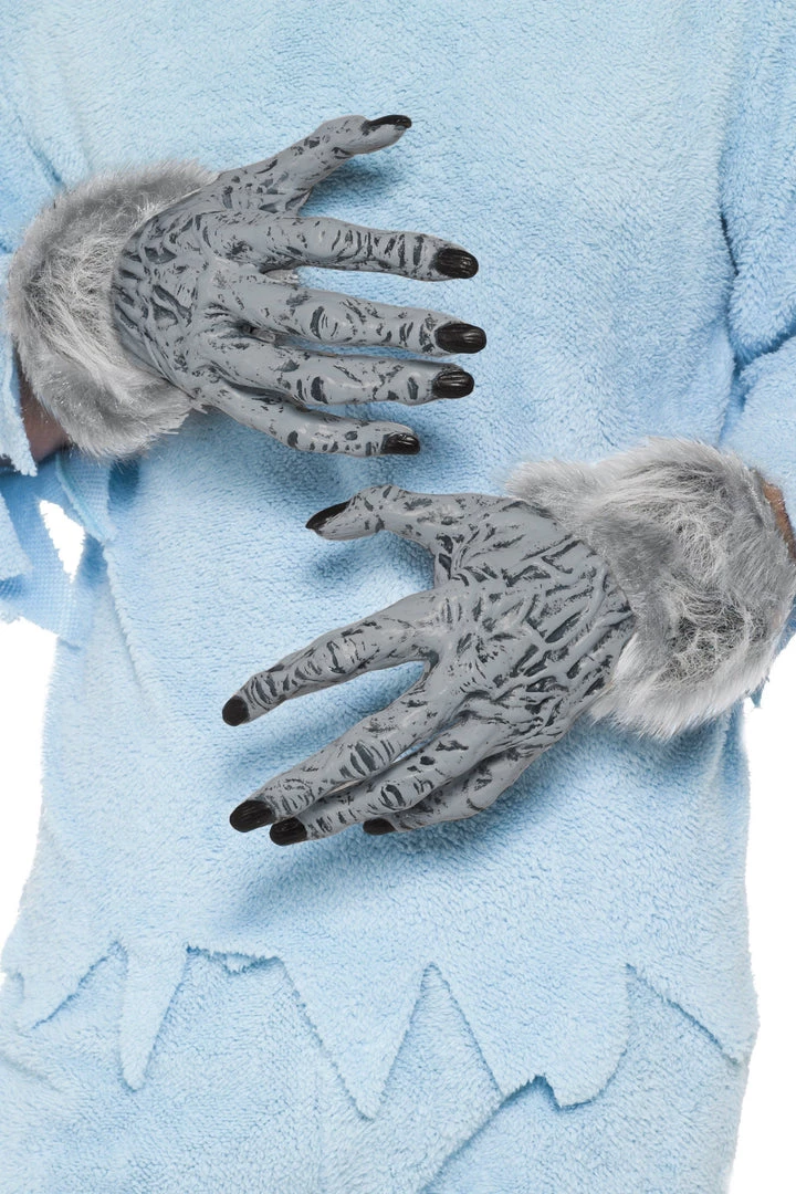 Complete your werewolf costume this Halloween with these creepy, gnarly Werewolf Furry Hand Gloves. Large grey rubber gloves with elongated fingers and silver grey fur at wrists. One pair of gloves only. Any other items sold separately.