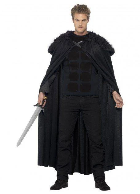Winter is coming. Dress as a member of Game of Thrones Night’s Watch in this Dark Barbarian costume for adults. Protect yourself from White Walkers and treasonous young stewards in this costume that consists of printed long sleeve stretch shirt and long flowing cape with fake fur yoke. Pants not included. Sword and all other accessories sold separately.