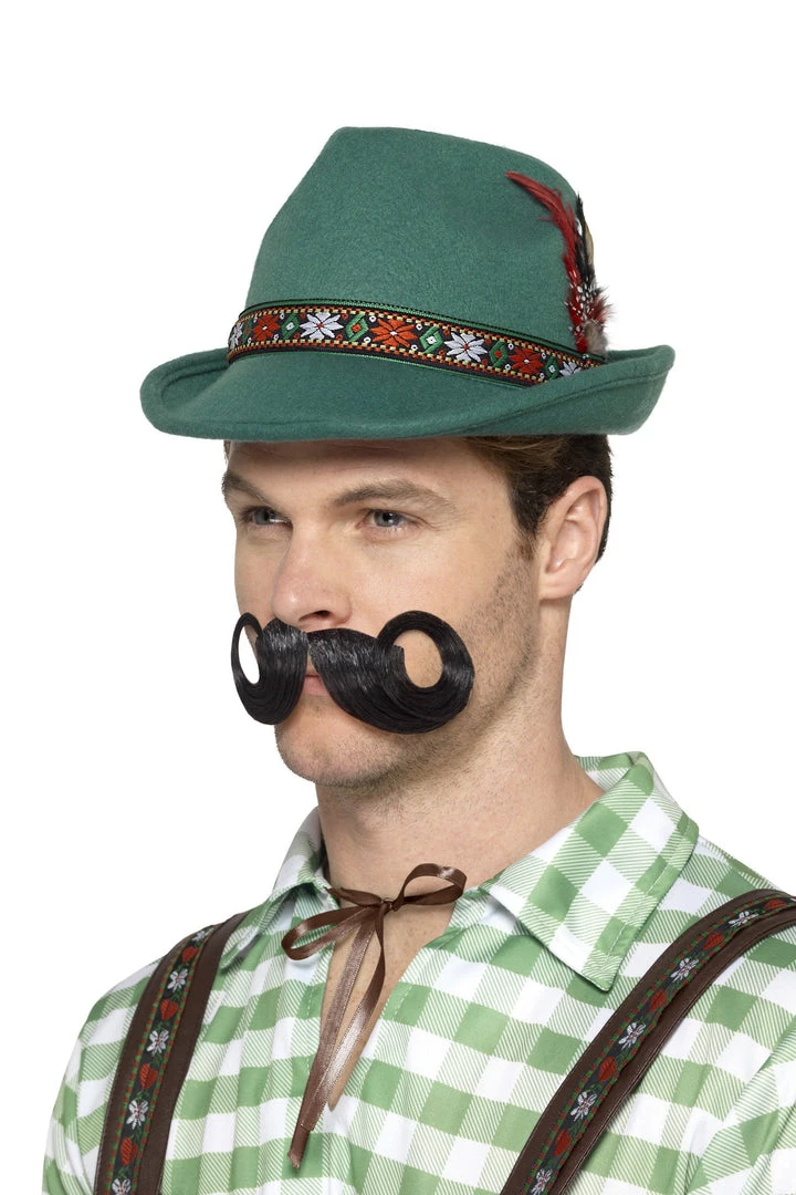 Traditional German hunter style hat for Oktoberfest in the alpine green. Matches perfectly with our extensive range of Lederhosen Costumes. Deluxe soft green feltex hat features alpine floral hatband and matching feathers for that authentic German look. Moustache and costume sold separately.