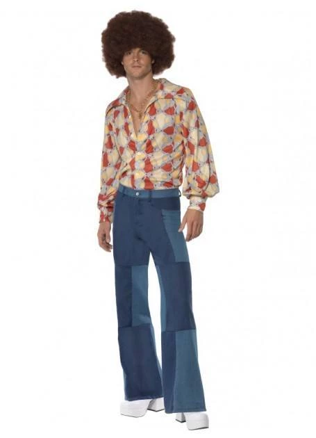 You can’t get any more 70s than a pair of denim patchwork flares. Match them with one of our groovy 70s shirts and you’ll be stoked. Perfect for disco and hippy parties. Package contains one pair of flares. Shirt, wig and all other accessories sold separately.