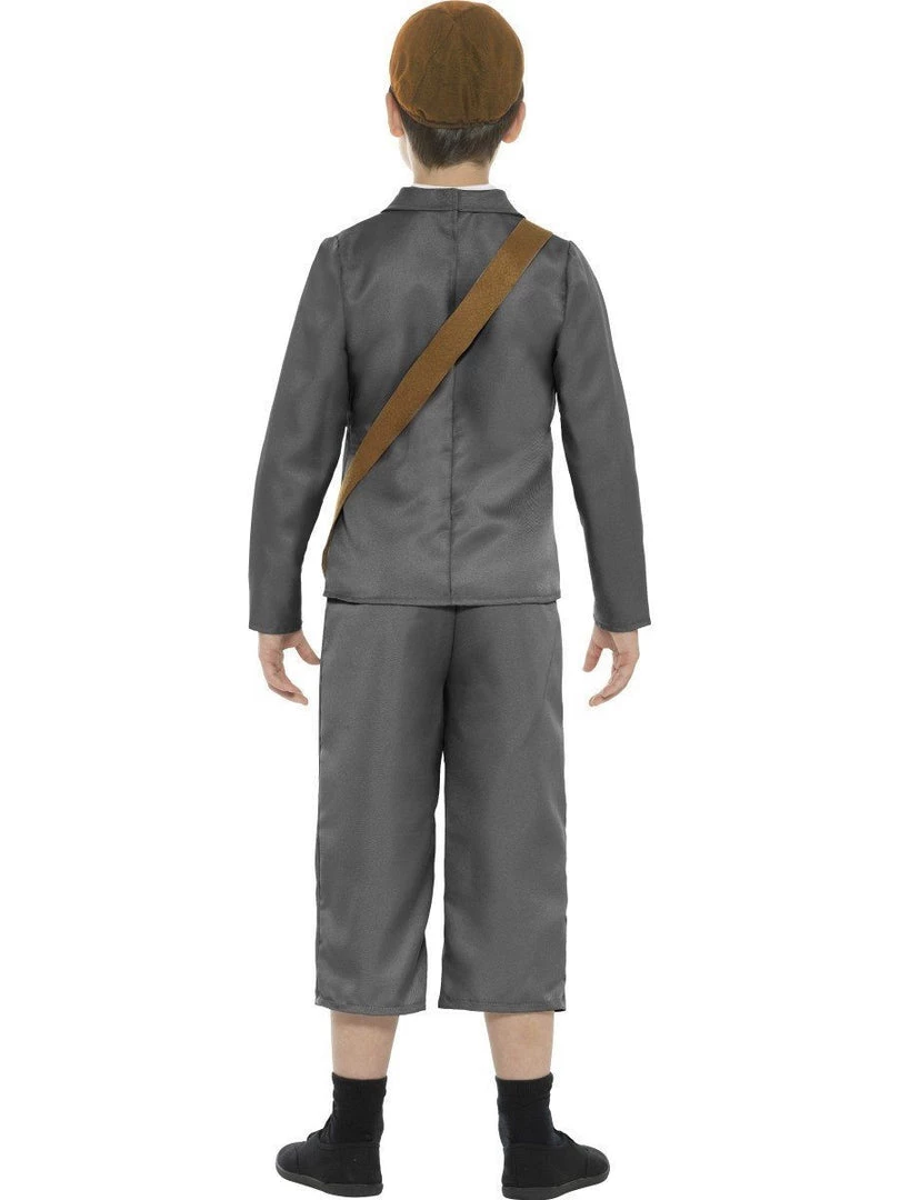 Old fashion school boy uniform costume. Great for Book Week or history class recreations at school. Costume is grey jacket with mock shirt, matching trousers, satchel, hat and comes with WWII evacuation scheme name tag, which makes it the perfect boy’s costume for Book Week. Also great for classic children’s characters like Michael from Mary Poppins or John from Peter Pan.