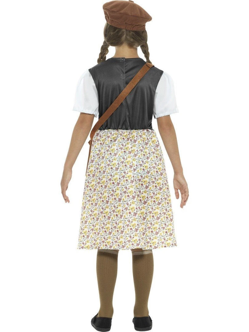 Wartime school girl Book Week costume. Perfect history fancy dress costume for a wide range of girls’ Book Week characters and for school history dress up days. Great for Orphan Annie, Roald Dahl or Enid Blyton characters. Costume includes floral patterned dress with attached vest, satchel, wartime evacuee i.d.tag and beret. Shoes and socks not included. Size Small only. Perfect for the 2017 Book Week theme “Escape to Everywhere”