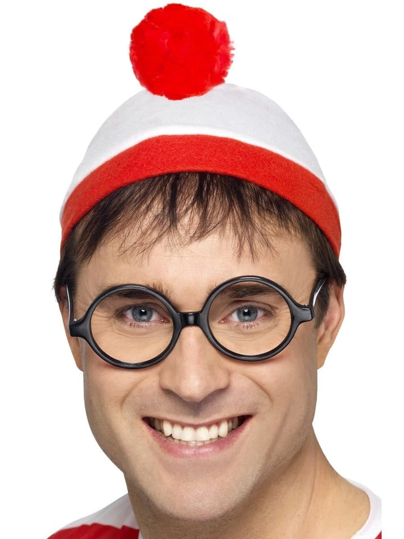 Create your own instant Where’s Wally or Where’s Wenda outfit with this Where’s Wally Instant Kit, which includes red and white hat with pom pom and black round glasses frames.