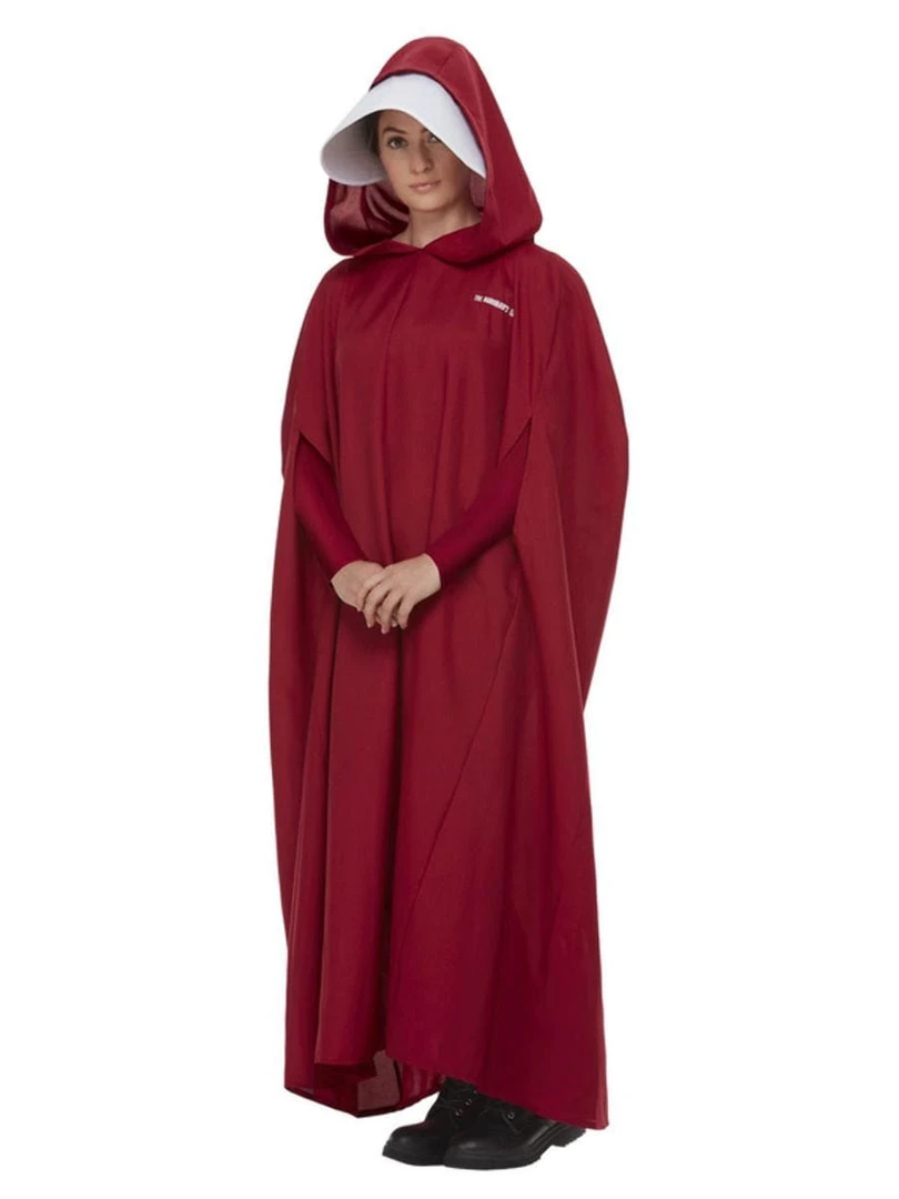 Is life reflecting art? Is this our own dystopian reality? Dress in this officially licensed Handmaid’s Tale costume at Halloween, on Black Friday, or to pop down to the shops for more toilet paper. If you may. Costume is long deep red hooded cloak with The Handmaid’s Tale embroidered on the front and white stiff bonnet.