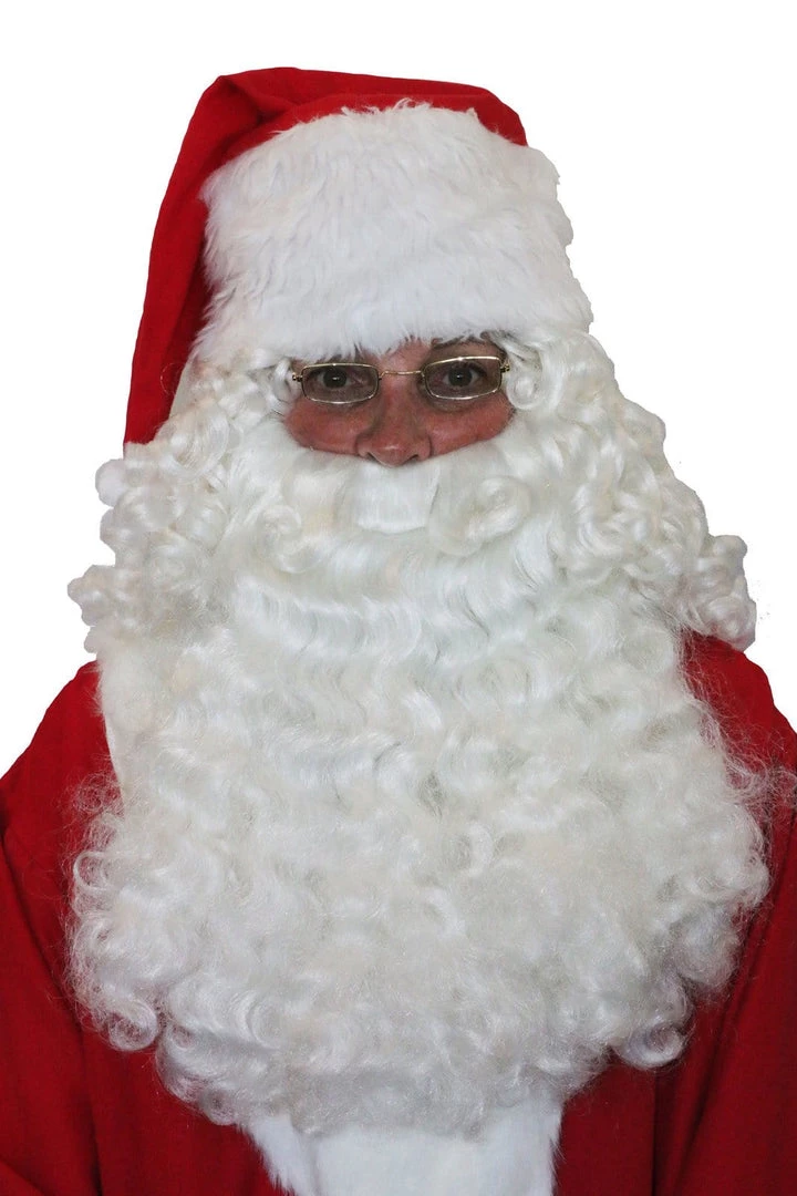 This Deluxe Santa Wig and Beard Set is the ultimate Christmas character wig and beard set. Set includes long white wavy beard and matching half wig. The half wig is specifically designed with the hot Australian summer in mind. The half wig means Santa will not be as hot as the top of his head is covered with Santa’s hat. These are the Santa wig and beard sets we use in our Santa Hire costumes. These wigs are purchased by some of Australia’s best known professional Santas.