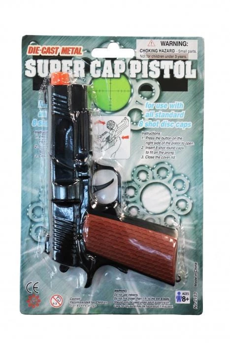 Our black diecast pistol is one of the most realistic styles on the market. Their metal body, deluxe quality and realistic sounds capabilities make them the obvious choice for your next costume accessory. Not Included: 8 Shot Caps sold separately