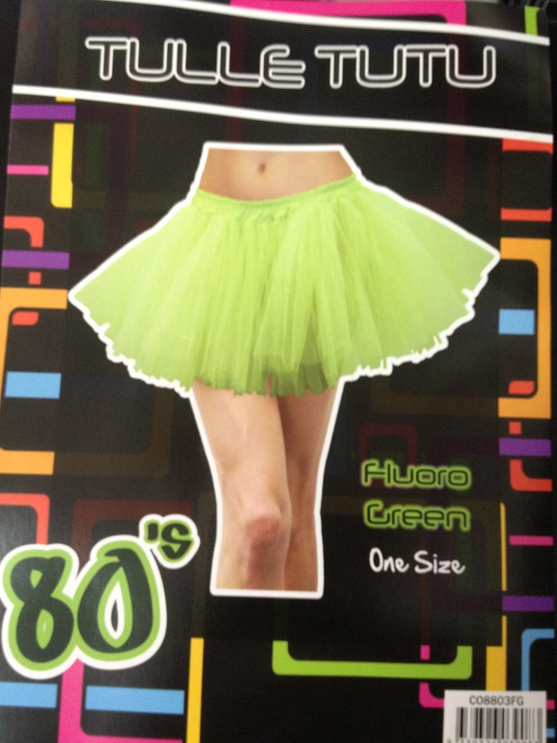 Fluoro green tulle tutu. Great for 80s, ballerinas, clowns, tight-rope walkers and performers of all kinds.