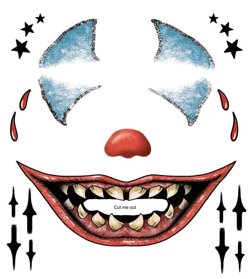 Clown face Halloween temporary face tattoo. The Most Realistic Temporary Tattoos Anywhere!