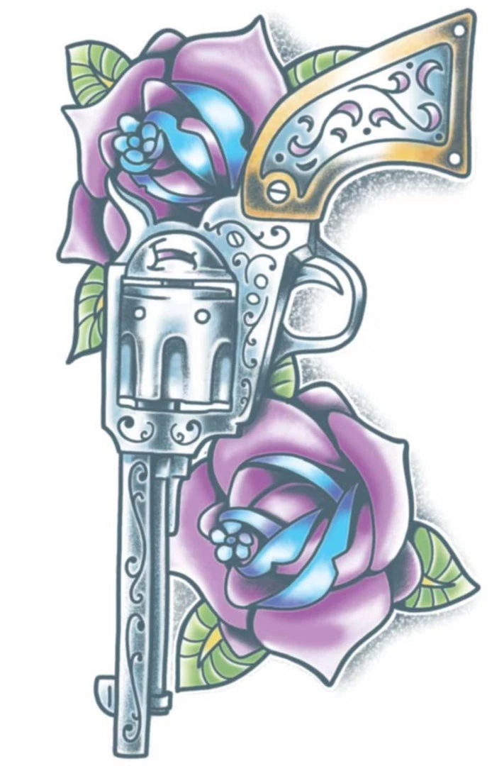 Day of the Dead Pistol Temporary Tattoo for Halloween and Mexican dress up parties. Size 11 x 8.5 cm