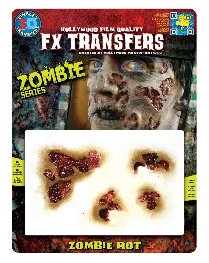 Hollywood film quality zombie Rot Face horror makeup is easy to apply only using water, and is latex free. no need for glue.