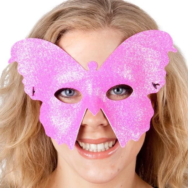 Bright Pink glitter butterfly masquerade mask with elastic band. Perfect for Masquerade events and children’s fairy parties.Â