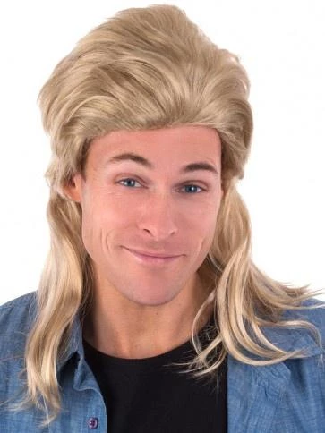 Blonde 80’s bogan mullet costume wig. Wig may require additional styling to achieve the desired look. If required use hairspray to hold desired style.