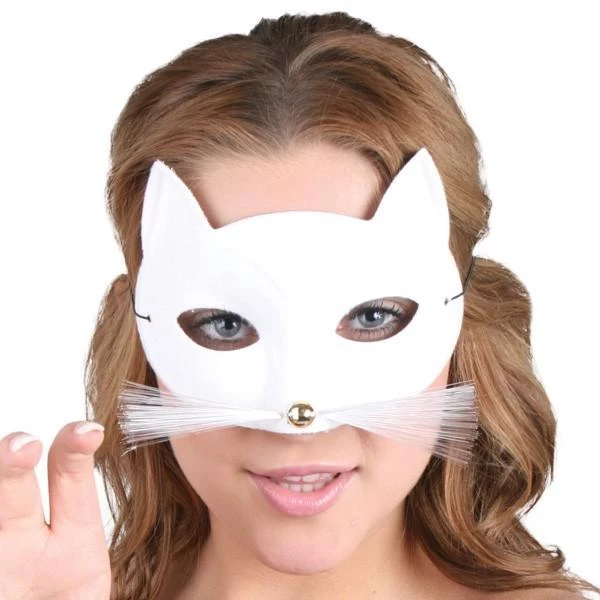 White Cat Masquerade Face Mask with Whiskers and Elastic strap